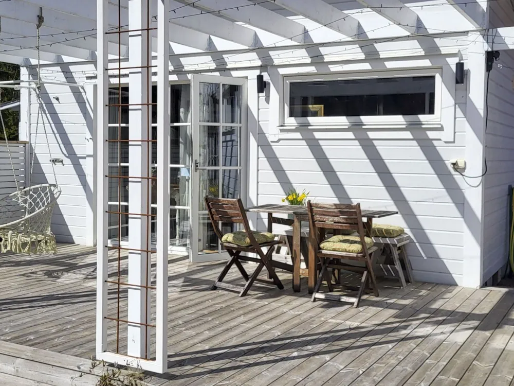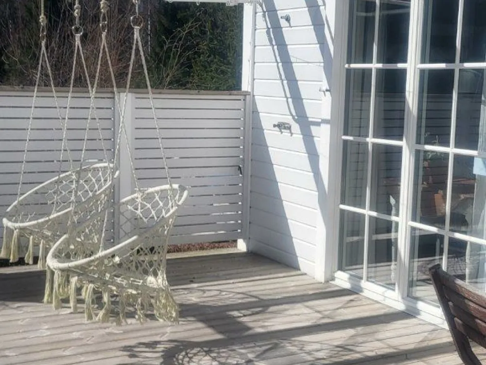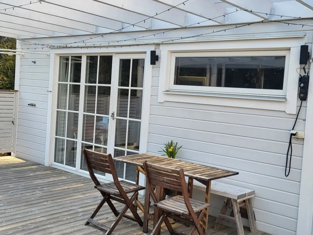 Large south-facing terrace shared with the host family. The terrace includes an outdoor shower and hanging chairs. Option to rent a hot tub. Bed linen and final cleaning are included, as well as two kayaks available to borrow (approx. 800 m away). Dogs are allowed for an additional fee, and there is a dog on the property that moves freely.