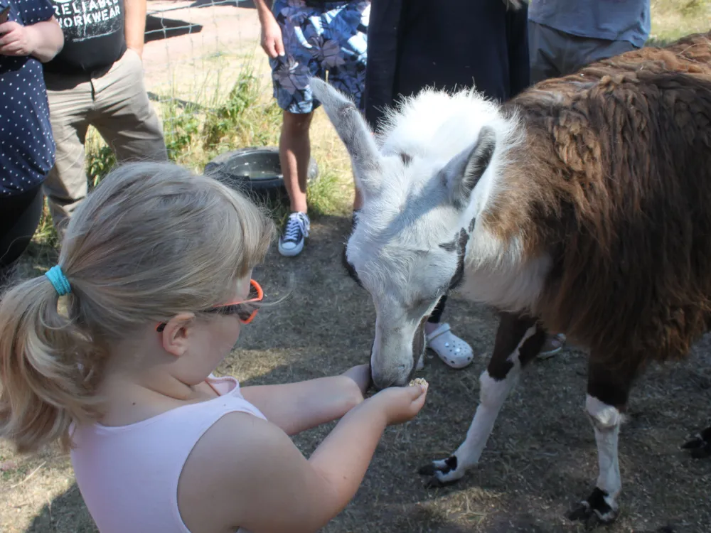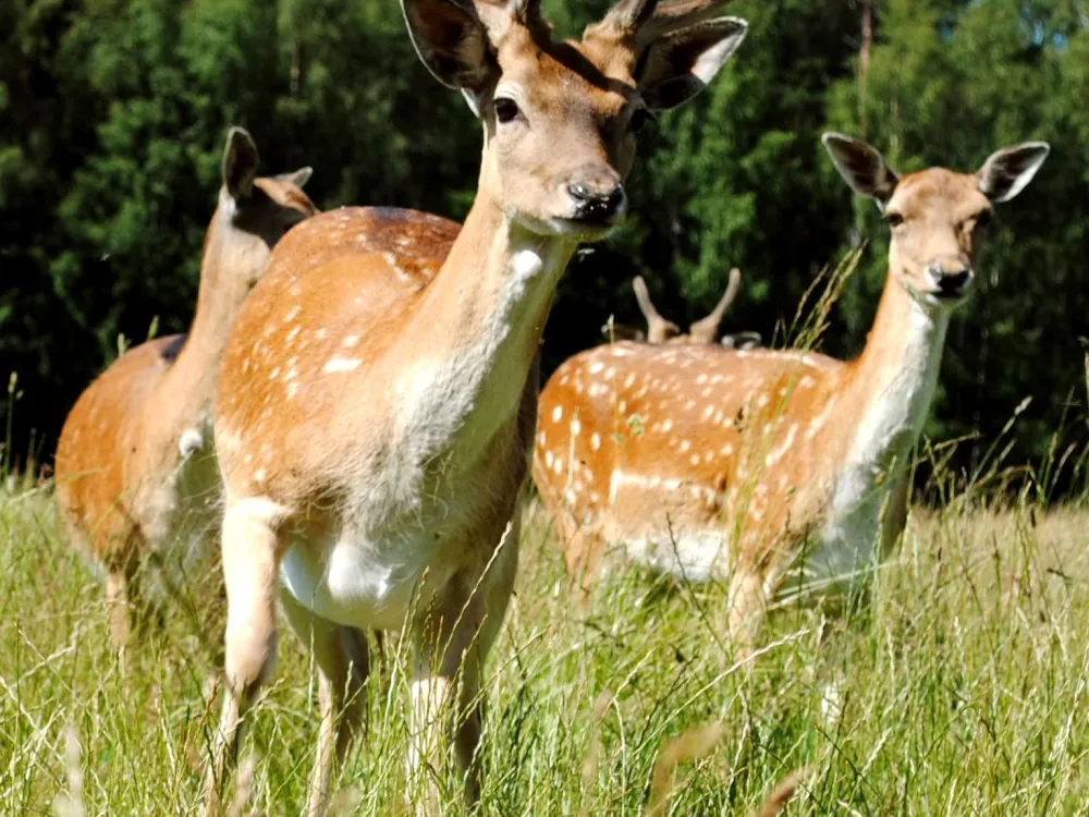 Ride in our safari tram which holds about 40 persons, on an unforgettable guided round trip in the game pasture where you can see red deer, fallow deer, wild boar and ostriches.