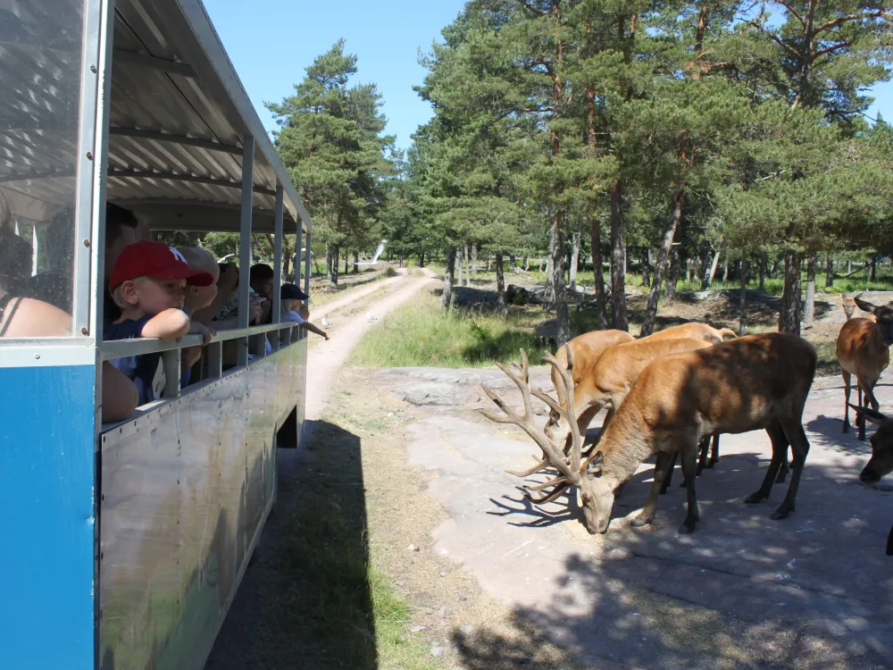 During our round trip we stop to see the animals and you get a possibility to see them at really close distance. The safari takes about 45 minutes and starts by the parking area at the Hunting & Fishing Museum in Käringsund, Eckerö.