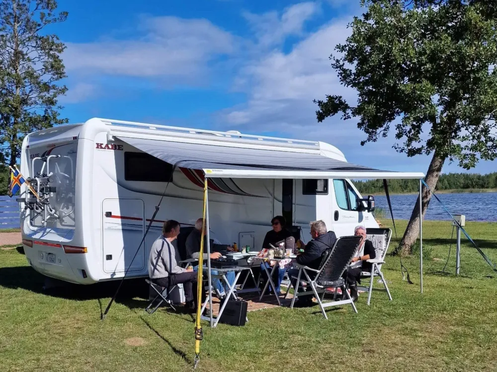 På området finns en camping för husbil/husvagn och tältplatser. Ny Servicebyggnad med privata duschar och toaletter, samt tvättstuga, kök, inva wc och dusch. Tömning av kem.toa och gråvatten.