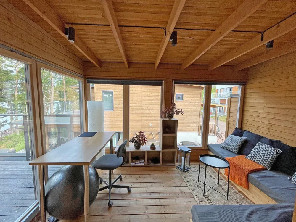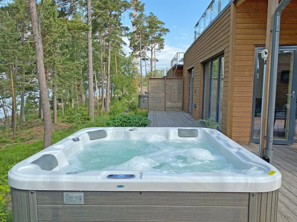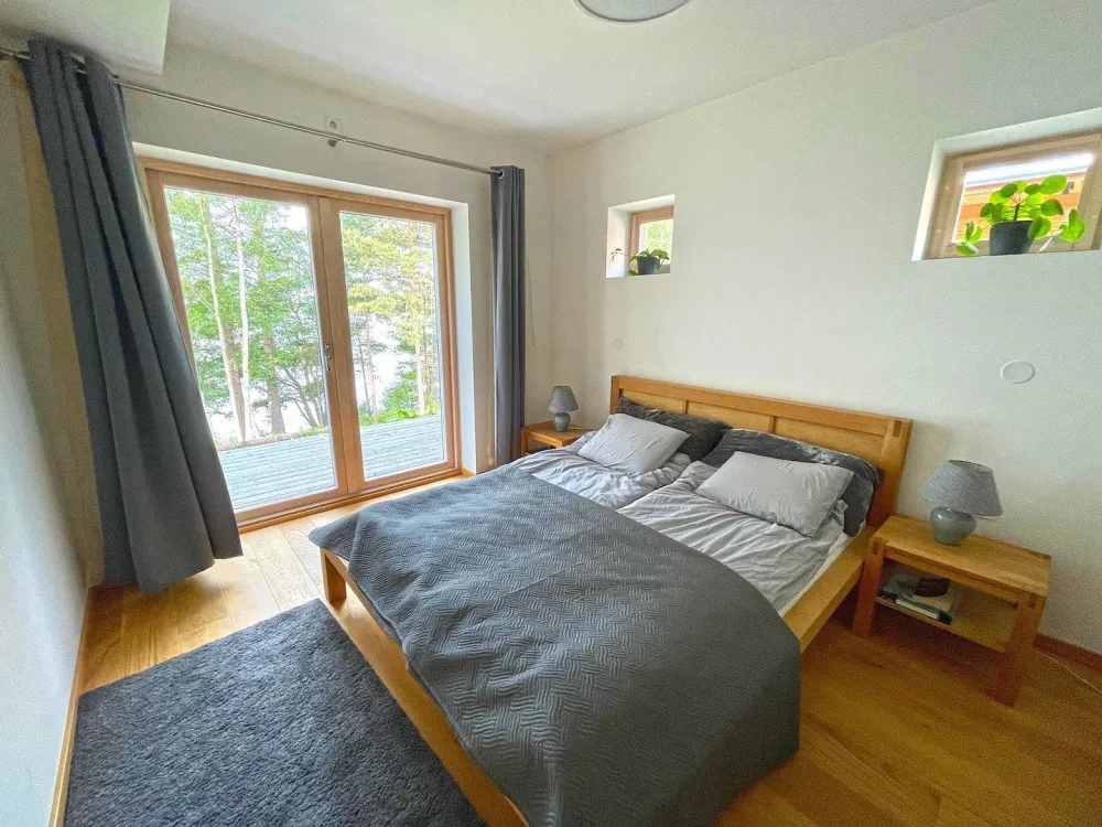 132 kvm. 4+2 bäddplatser. Rymlig 2-plans villa i bostadsområde med utsikt över inloppet till Mariehamn, ligger 35 meter från havet (ej badplats). Villan inrymmer fullt utrustat kök, två sovrum med dubbelsäng samt ett sovrum med enkelsäng med bäddbar extrabädd i. Vardagsrum, badrum med wc, elbastu och tvättstuga. Toalett med dusch på plan2. Två terrasser varav en med jacuzzi. Parkering för två bilar i carport. Tre vuxencyklar för fri användning. Kajka att hyra. Avstånd: Mariehamns centrum 2,5 km, Mariehamns hamn 3 km, Eckerö 36 km, Långnäs 31 km, busshållplats 300 m, badstrand 2,5 km.
