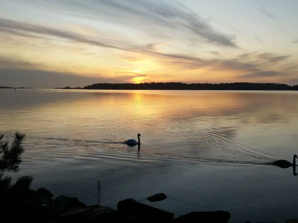 Villan ligger vid promenadstig som sträcker sig längs strandlinjen till Mariehamn hamn.