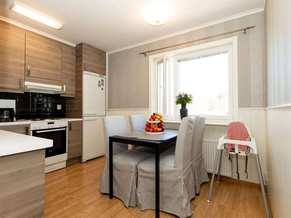 Alla tvåor och treor har egen tvättmaskin i lägenheten. Bastu, torkskåp samt tvättmaskin för studiolägenheterna finns i källarn.