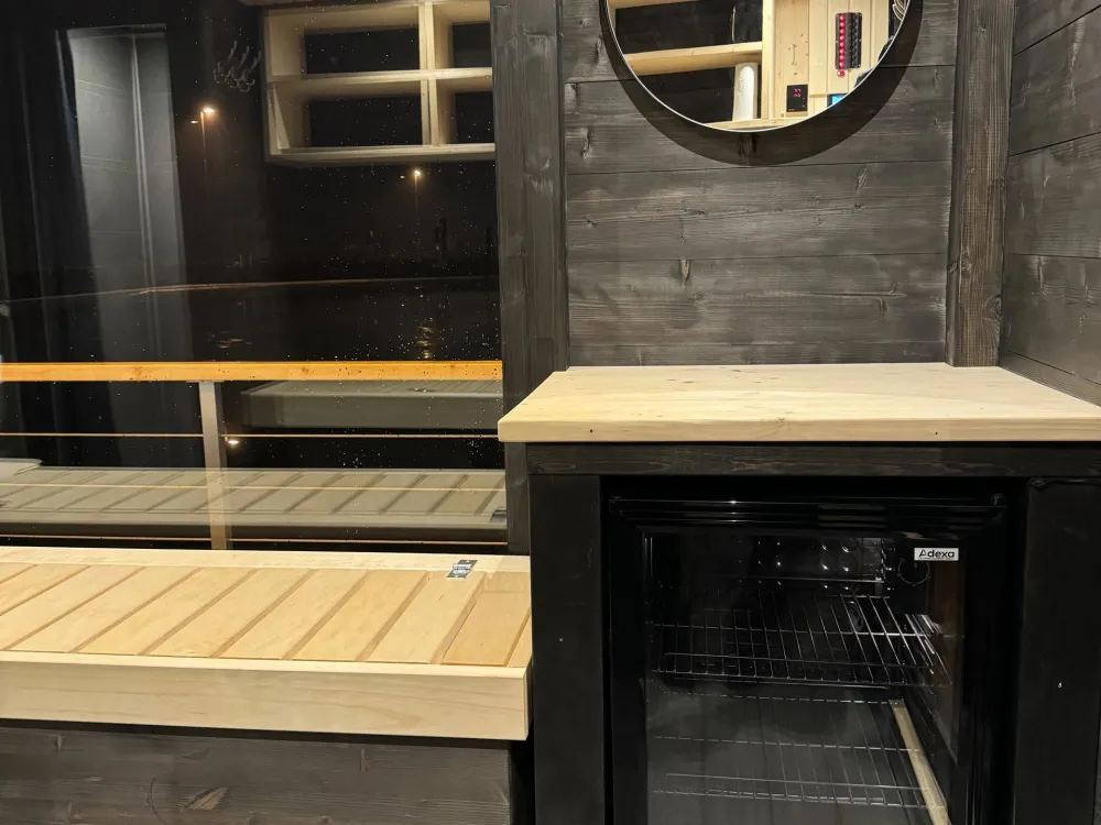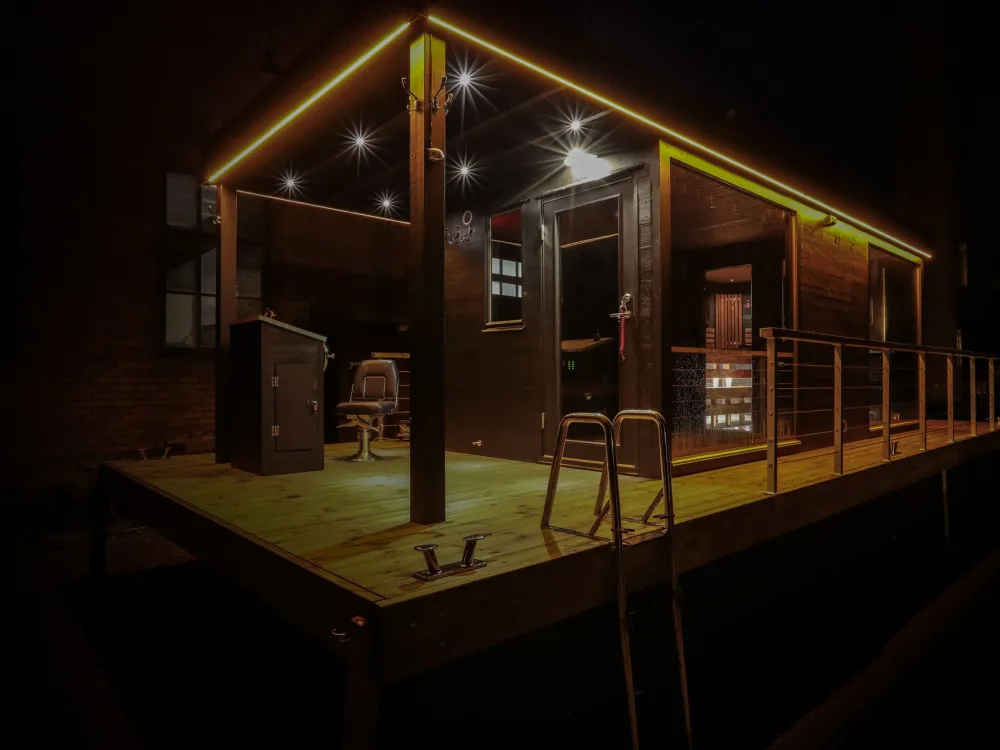 Bastuflotten är placerad mitt i Östra hamnen i Mariehamn och ger en lugn miljö för ett hett bastubad. Med vattnet bara några steg bort finns möjligheten att hoppa i för ett uppfriskande dopp alltid till hands. Det övre däcket, med sin hisnande utsikt, skapar en fantastisk plats för avkoppling medan den nedre loungen är perfekt för både socialt samspel och återhämtning.